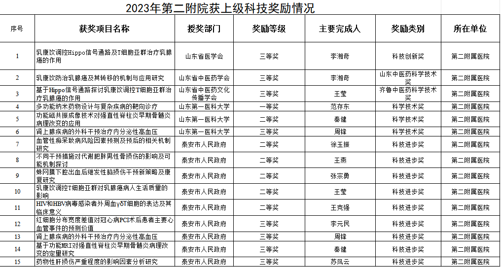 上一条:山东省高等学校重大疾病与氢医学转化应用重点实验室简介 下一条:关于山东省中医药科技项目2024年度第一批集中结题的通知