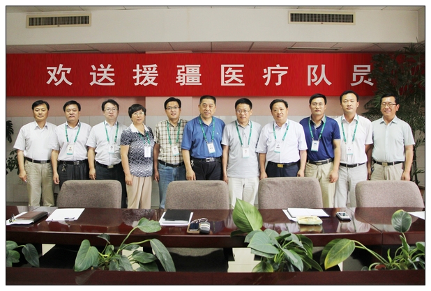 6月29日,我院院长李长勤,党委副书记胡建功,副院长贾庆卫、杨晓雯、肖强和部分职能部门负责人共同为即将启程赴新疆喀什岳普湖县人民医院执行援疆医疗任务的朱峰、郭征东、王擂同志举行欢送会。