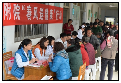 3月8日上午八点三十分,我院专家乘坐查体车准时到达天平街道大陡山村义诊。此次“春风送健康”义诊活动由我院女工委和查体中心联合组织,参加义诊活动的专家队伍阵容强大,由内科、外科和妇科等9位专家医师和11名南丁格尔志愿者组成。活动共接待就诊咨询社区居民近300名,开出处方100余张,心电图检查150余人次、DR检查100余人次,发放健康处方、健康宣教材料1000余份。义诊现场气氛热烈,社区居民积极踊跃参加,受到了群众的一致欢迎和好评。这次义诊,不仅是对“春风送健康”活动主题的最美诠释,同时树立了泰山医学院附属医院良好的社会形象,收到了很好的社会效益。