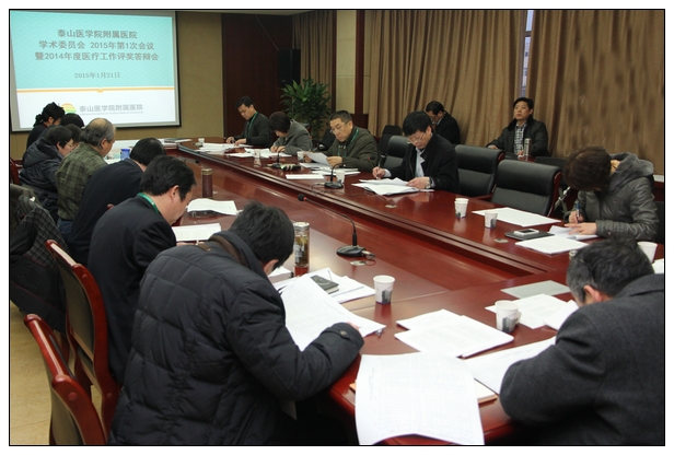 2015年1月21日下午,我院2015年学术委员会第一次会议暨2014年度医疗工作评奖答辩会在综合病房楼小会议室召开。院长李长勤,副院长杨晓雯、王俊勤等医院学术委员会22名专家担任本次答辩会评委。全院相关临床、医技科室主任及参加答辩的人员等60余名同志参加了会议。答辩会由医务处主任房振胜主持。