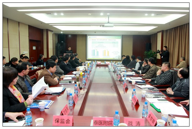 11月27日下午,由国家中医药局政策法规与监督司副司长麻颖、黑龙江公安厅治安总队支队长王海峰、辽宁省司法厅基层处主任吴涛、广东省卫生计生委医政处主任科员陈永嘉、国家中医药局医政司主任科员孙晓军、北京朝阳医院医务部主任杨新乾组成的“国家十一部委维护医疗秩序打击涉医违法犯罪专项整治行动”督导组一行来我院检查指导工作。山东省公安厅、司法厅、中医药管理局、卫生计生委,泰安市卫生局、公安局、司法局、宣传部、法院、检察院、工商局、综治办、民政局、打私办、保监会等部门领导和我院在家的院领导陪同检查并参加汇报会。