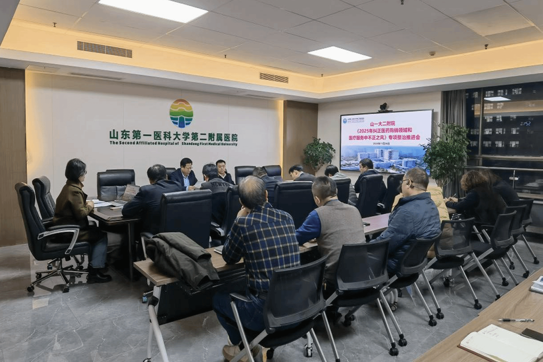 2025年11月26日下午,我院组织召开2025年纠正医药购销领域和医疗服务中不正之风专项整治推进会。党委委员、纪委书记张传新,党委委员、副院长房振胜,行风管理办公室、纪委、医学工程部、药学部等十余个职能部门负责人共20余人参加会议。