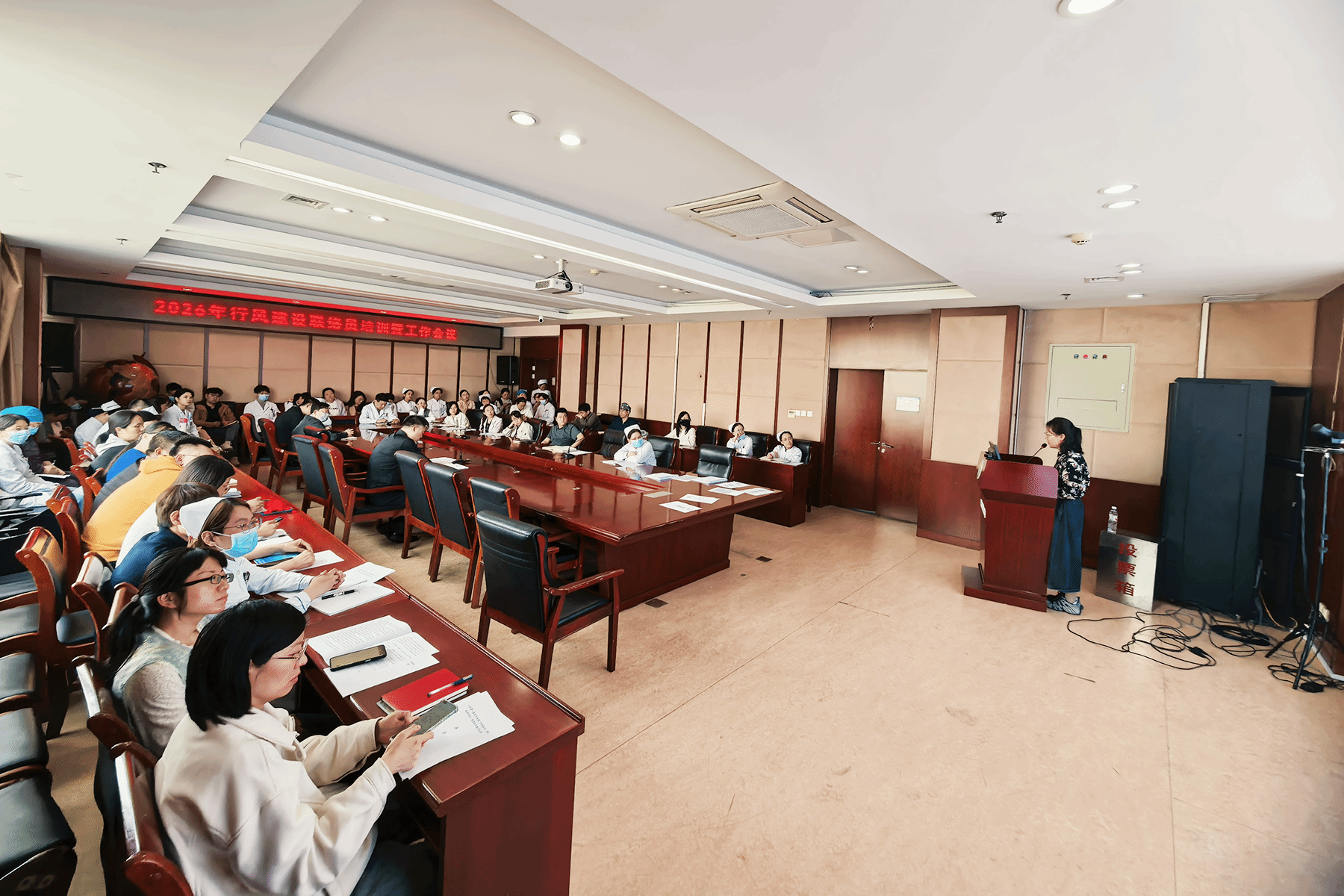 4月15日,我院在学术报告厅召开2026年行风建设联络员培训暨工作会议。全院各部门、科室的行风建设联络员,行风办及医务部共70余人参会。