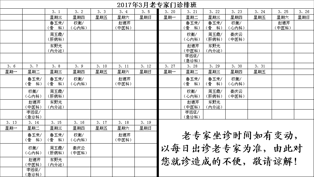 上一条:2017年4月份专家门诊时间 下一条:2017年2月份专家门诊时间