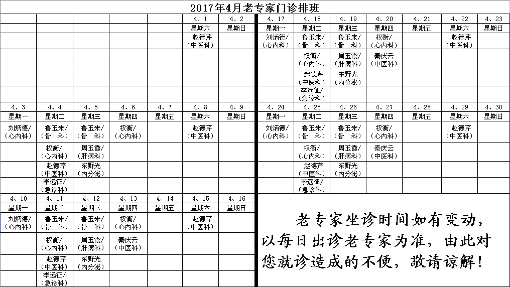 上一条:2017年5月份专家门诊时间 下一条:2017年3月份专家门诊时间