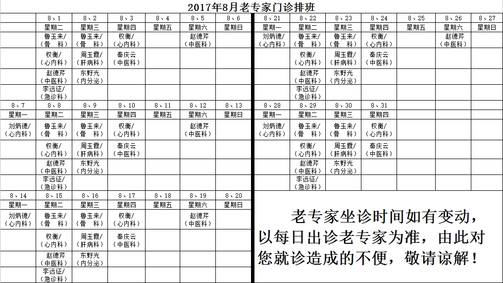 上一条:2017年9月份专家门诊时间 下一条:2017年7月份专家门诊时间