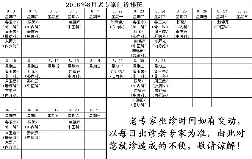 上一条:2016年9月份专家门诊时间 下一条:2016年7月份专家门诊时间