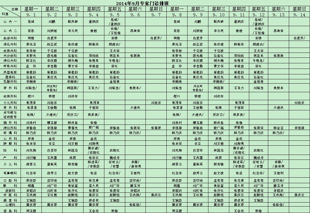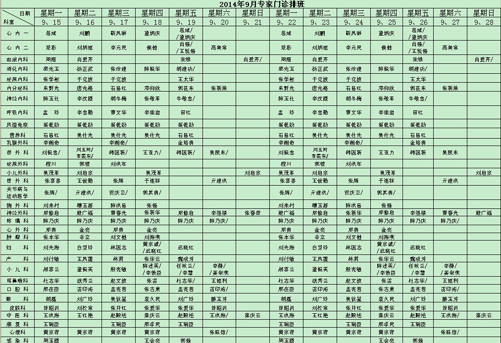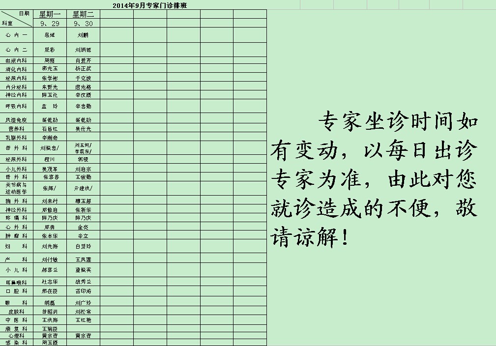 上一条:2014年10月份专家门诊时间 下一条:2014年8月份专家门诊时间