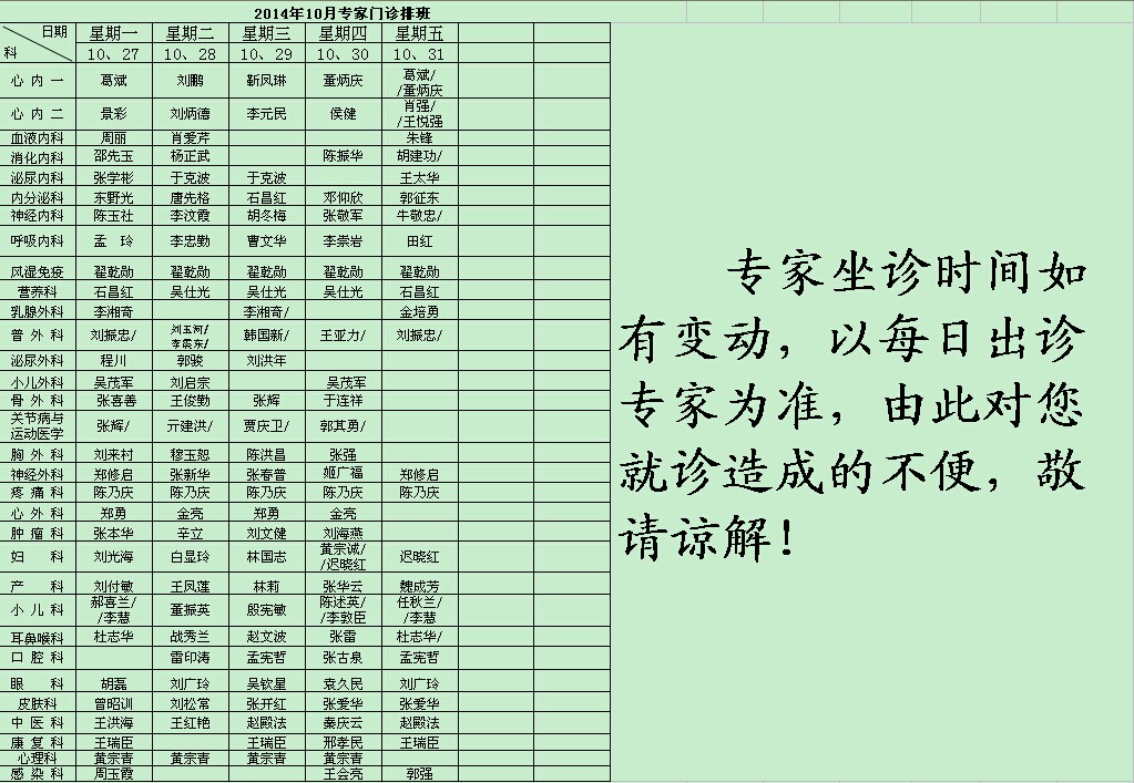 上一条:2014年11月份专家门诊时间 下一条:2014年9月份专家门诊时间