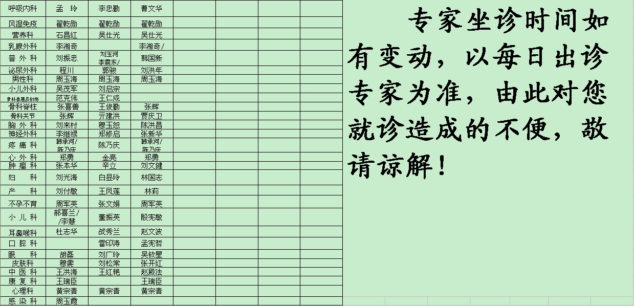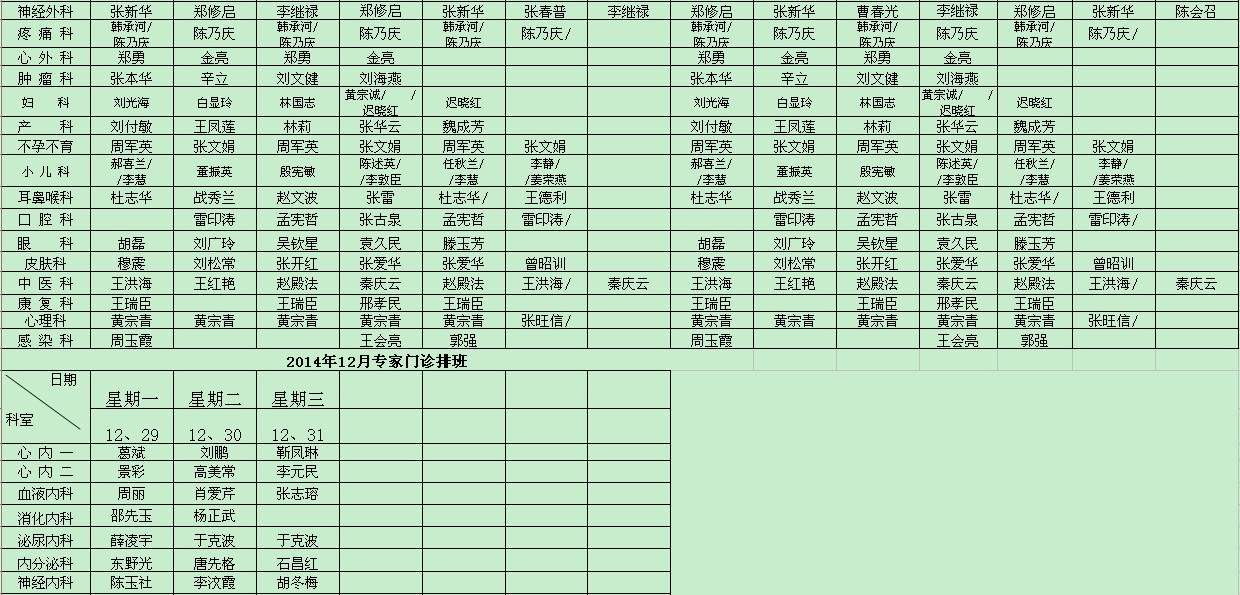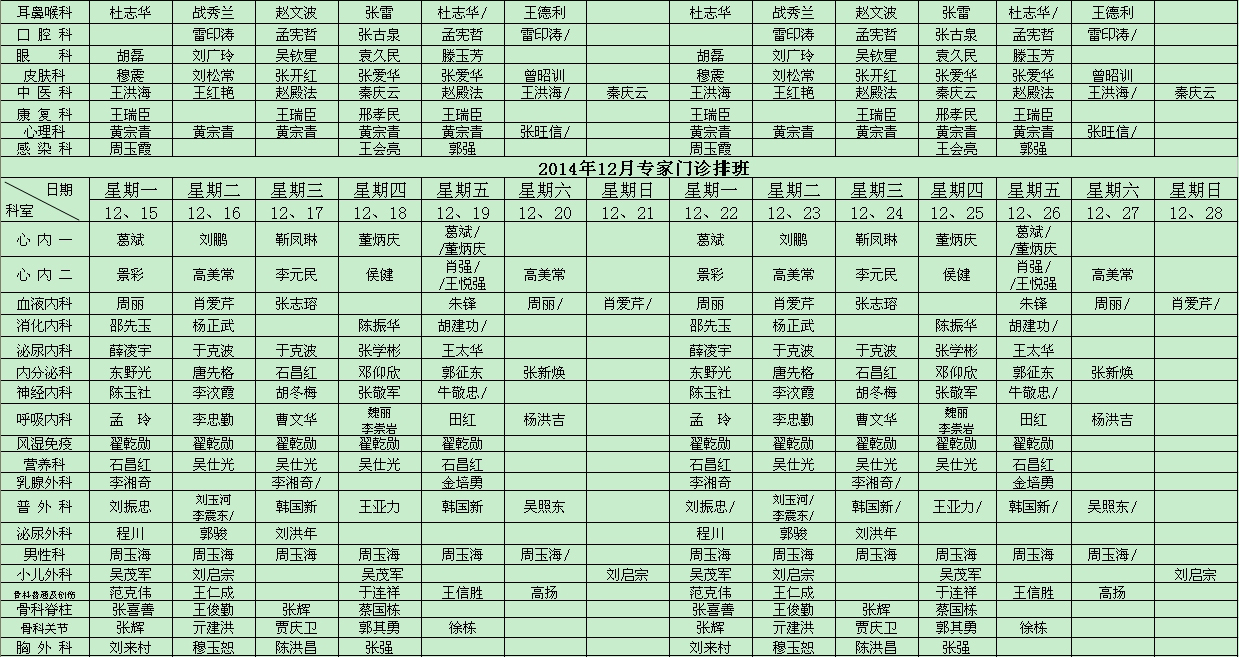 上一条:2015年1月份专家门诊时间 下一条:2014年11月份专家门诊时间