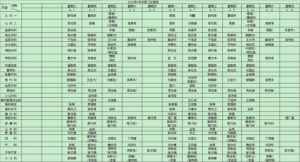 上一条:2015年5月份专家门诊时间 下一条:2015年3月份专家门诊时间