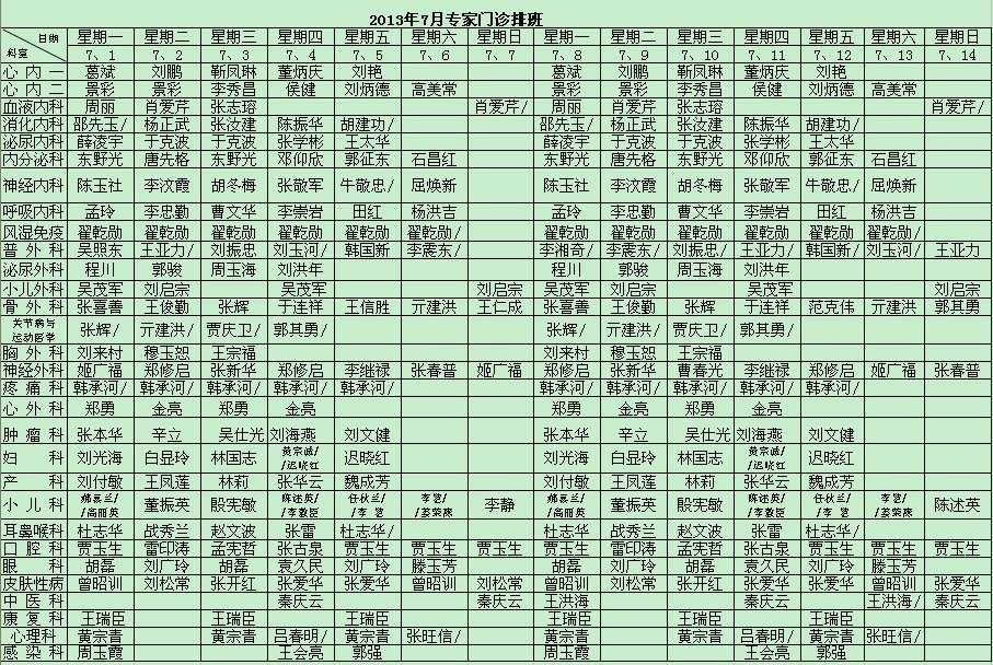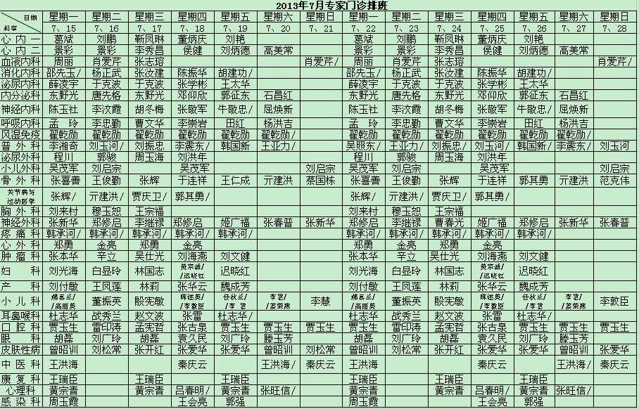 上一条:2013年8月份专家门诊时间 下一条:2013年6月份专家门诊排班
