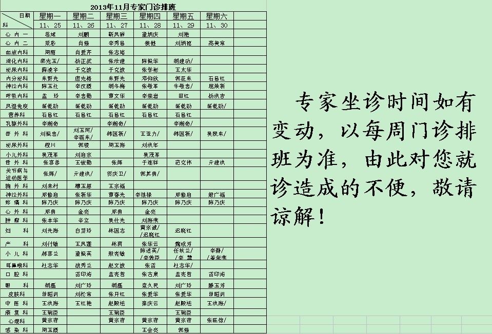 上一条:2013年12月份专家门诊时间 下一条:2013年10月份专家门诊时间