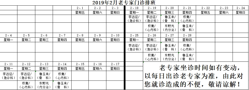 上一条:2019年3月专家门诊时间 下一条:2019年1月专家门诊时间