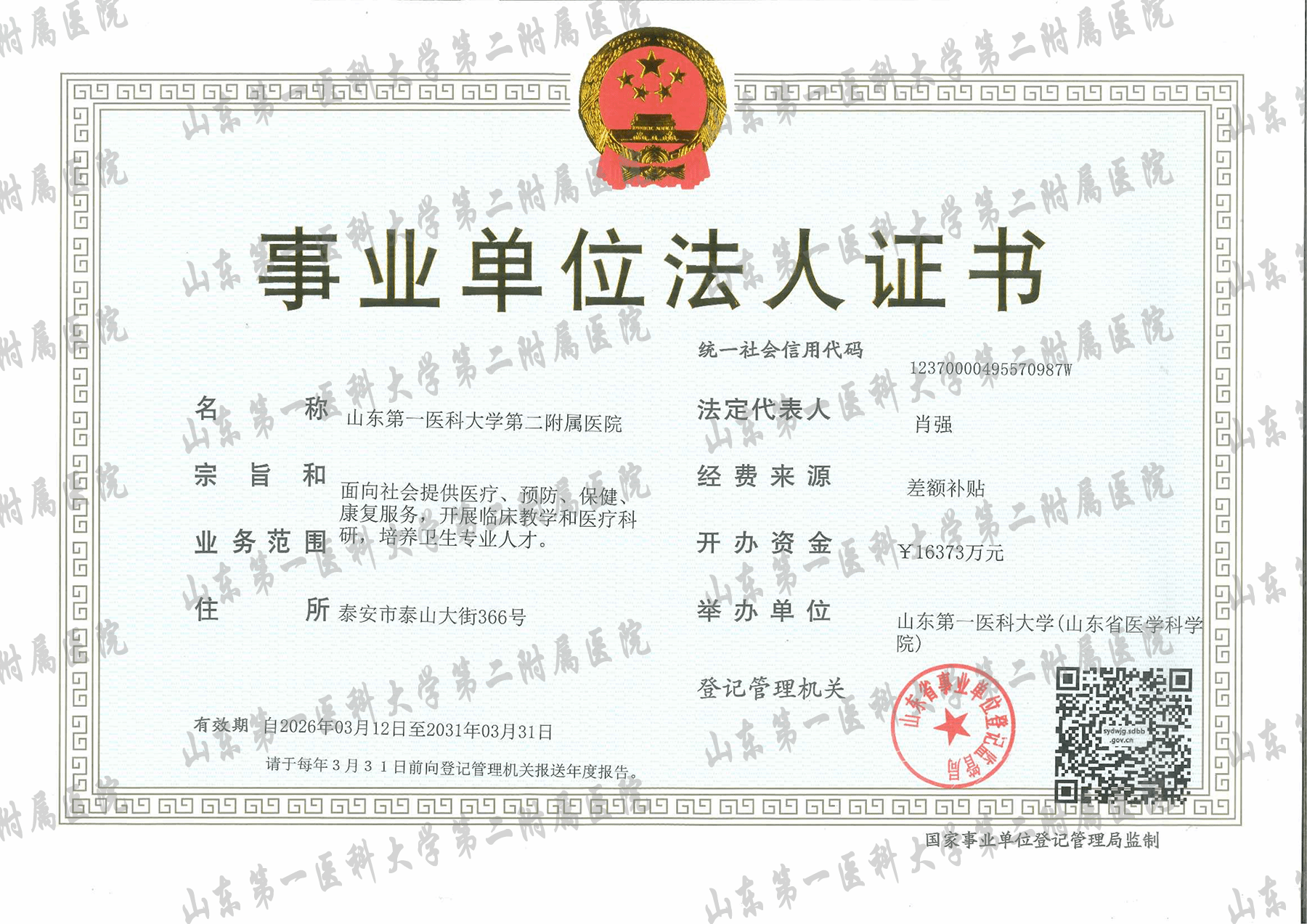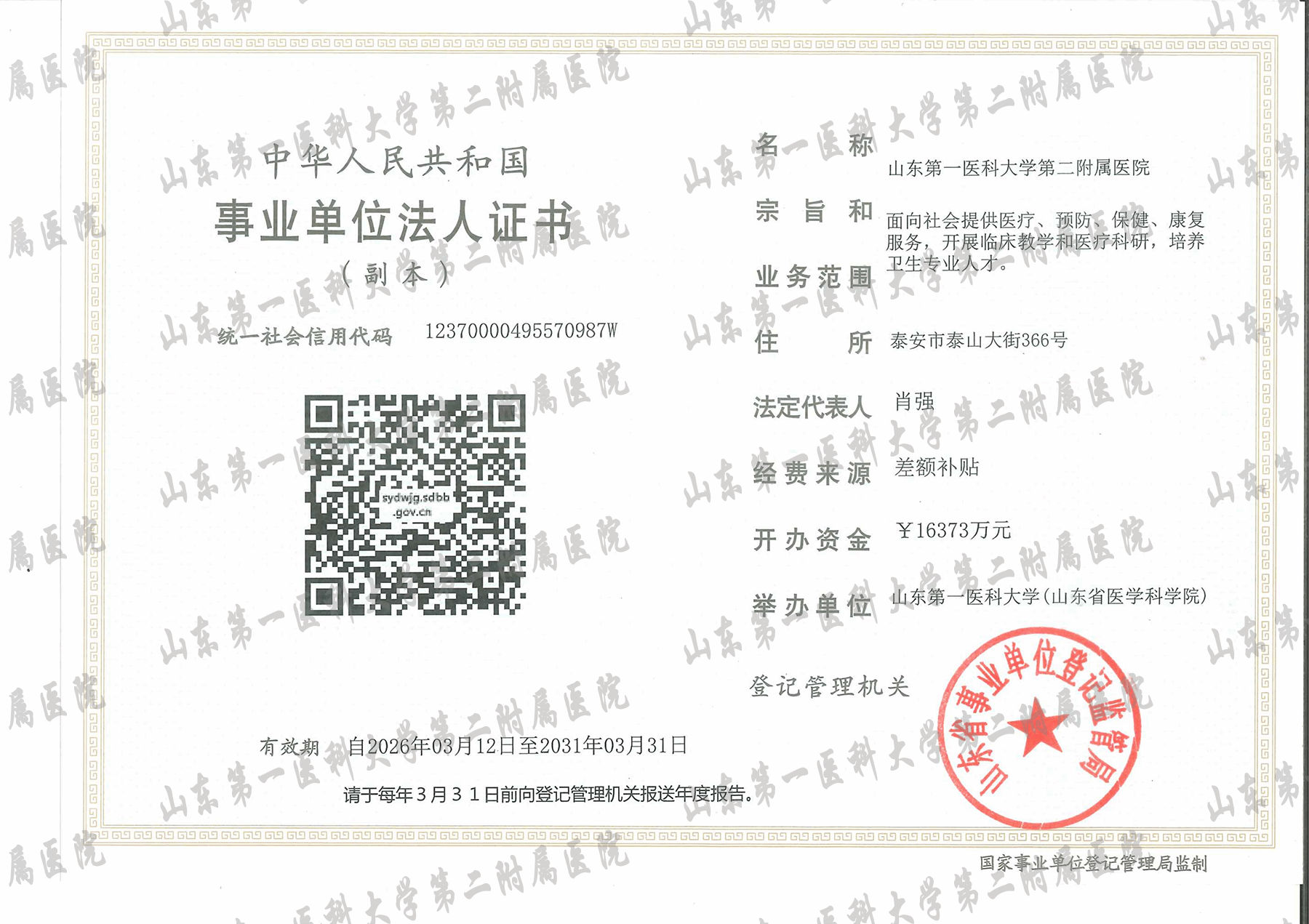 医院地址:中国.山东.泰安.山东第一医科大学第二附属医院(第二临床学院)