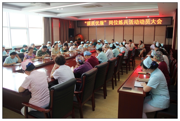 8月28日下午,医务党总支“提质优服”岗位练兵活动动员会在综合病房楼四楼小会议室召开。医务三支部委员及各病区护士长参加会议。会议由支部书记、护理部主任杨朝霞主持。