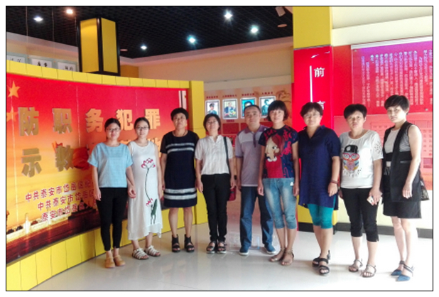 2016年8月16日,医务五支部全体党员在党总部书记薛宾带领下,开展“两学一做”主题党日活动,参观了岱岳区廉政教育基地。全体党员共同观看了先进党员代表的事迹展览,还有十八大以来落马的党员和岱岳区2010年以后落马的部分领导干部典型案例介绍。通过参观,大家深有感悟,表示身为一名共产党员,一定要廉洁自律,时刻提醒自己,以党员的标尺严格要求自己,争做合格党员。